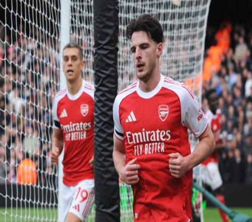 第30分鐘,厄德高因傷被換下場(chǎng)。蘇比門迪替補(bǔ)上場(chǎng)。8分鐘后,阿森納進(jìn)球了!賴斯在禁區(qū)中路推射破門!半場(chǎng)補(bǔ)時(shí)階段,阿森納差一點(diǎn)擴(kuò)大比分,只可惜卡拉菲奧里的遠(yuǎn)射擊中了立柱彈出。半場(chǎng)結(jié)束,阿森納1-0領(lǐng)先西漢姆聯(lián)。