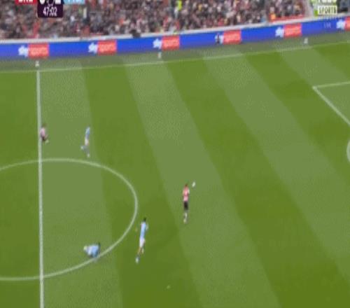 第89分鐘,多納魯馬后場(chǎng)玩火,大腳解圍擊中沙德的身體,差點(diǎn)反彈進(jìn)自家球門(mén),曼城逃過(guò)一劫。