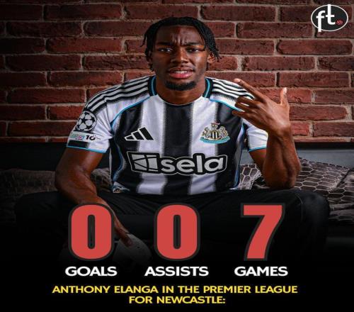 值得一提的是,埃蘭加在加盟紐卡斯?fàn)柭?lián)后的前7場英超比賽中,尚未參與任何進(jìn)球。