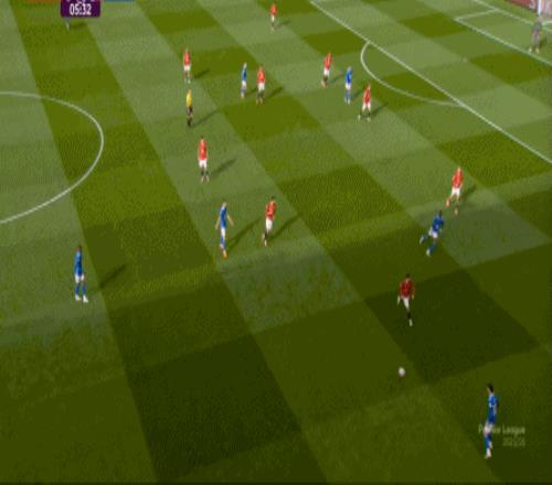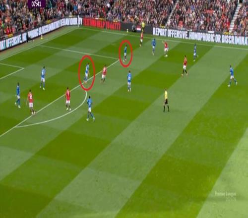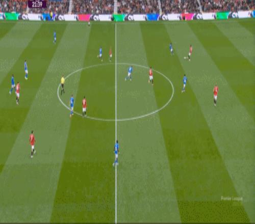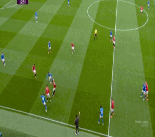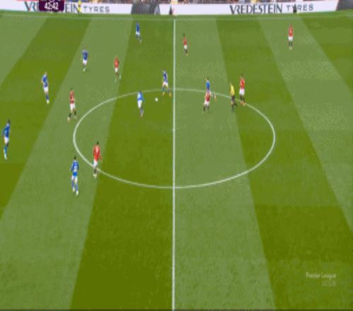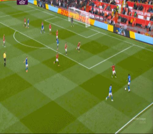 比如這個(gè)右路的4防3,達(dá)洛特和盧克-肖兩人撲一點(diǎn),布魯諾和芒特都沒(méi)有注意到身后空間:
