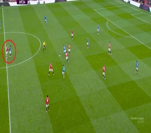 在這次5防3成功之后,曼聯(lián)立刻就打出了反擊,利用的其實(shí)就是阿瑪?shù)?迪亞洛這一點(diǎn),只要擺脫掉對(duì)方防守意識(shí)可能不夠的邊鋒球員,就會(huì)立刻進(jìn)入到誰(shuí)都管不到的空位里: