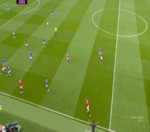 于是在第8分鐘,曼聯(lián)就再次利用到了343打四后衛(wèi)球隊(duì)的體系優(yōu)勢(shì),阿瑪?shù)?迪亞洛進(jìn)入空位得球: