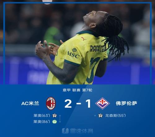 雷速體育10月20日?qǐng)?bào)道宣稱(chēng) 25/26賽季意甲聯(lián)賽第7輪,AC米蘭2-1戰(zhàn)勝佛羅倫薩。上半場(chǎng)比賽兩隊(duì)互交白卷,下半場(chǎng)比賽戈森斯混戰(zhàn)破門(mén)幫助佛羅倫薩首開(kāi)紀(jì)錄。隨后萊奧遠(yuǎn)射破門(mén)扳平比分,比賽最后時(shí)刻萊奧點(diǎn)射破門(mén)梅開(kāi)二度,幫助米蘭成功完成逆轉(zhuǎn)。