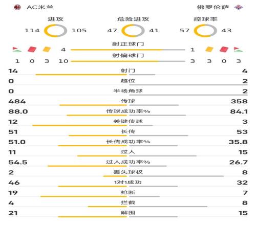 55’戈森斯混戰(zhàn)破門(mén),AC米蘭0-1佛羅倫薩
