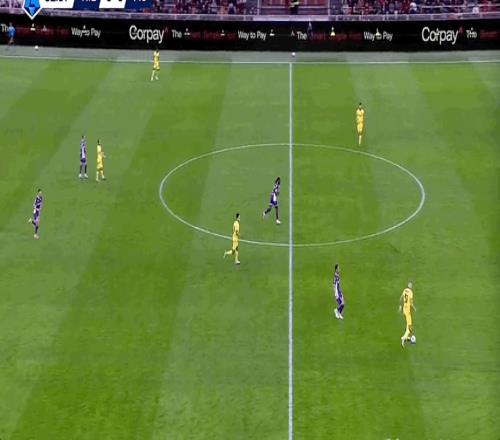 32’半小時(shí)僅兩腳射門(mén),米蘭依舊后場(chǎng)耐心傳遞倒腳