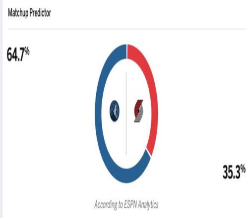 賽前ESPN對(duì)本場(chǎng)比賽進(jìn)行了預(yù)測(cè):雖然愛(ài)德華茲出戰(zhàn)成疑,但森林狼的勝率高達(dá)64.7%,而開(kāi)拓者則只有35.3%。