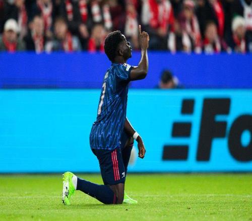 此役客場對陣布拉格斯拉維亞,首發(fā)出戰(zhàn)的薩卡在上半場主罰點球破門。