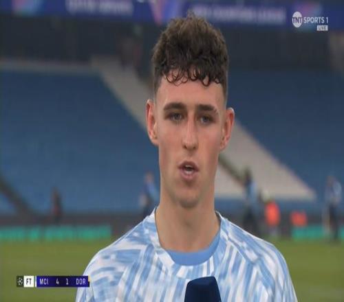 在歐冠聯(lián)賽階段第4輪上演梅開二度幫助曼城主場(chǎng)4-1大勝多特蒙德之后,福登接受了來自TNT體育的采訪。