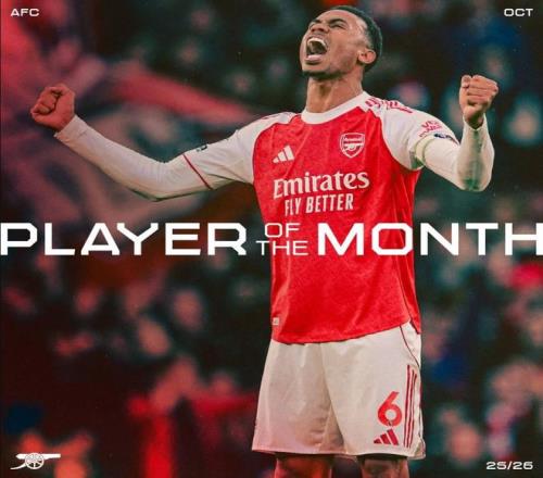 加布里埃爾被我們的球迷投票選為10月份最佳球員,他獲得了45%的選票,擊敗了賴斯、廷貝爾和薩卡,這是他在槍手生涯中第6次獲得該獎項,也是他在2025年的第二次獲獎(第一次是在一月)。