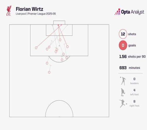 英超11輪過后,利物浦新援維爾茨仍未取得進球,也沒有助攻入賬,數(shù)據(jù)相當慘淡。