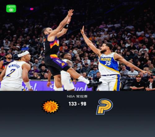 第四節(jié)太陽狄龍-布魯克斯拿下6分,步行者杰-赫夫拿下3分,最終太陽133-98戰(zhàn)勝步行者