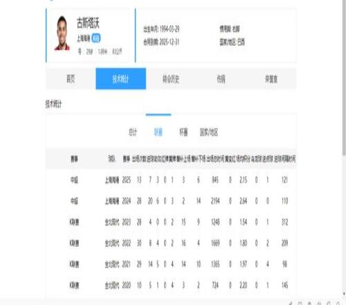本賽季,古斯塔沃共代表海港出戰(zhàn)13場聯(lián)賽,累計打進(jìn)7球,送出3記助攻。