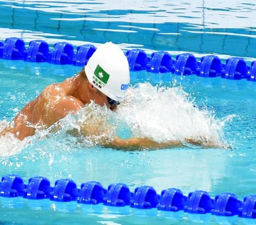 澳門(mén)泳手周文顥混合4x100游第二棒蛙泳接力,與隊(duì)友一起把澳門(mén)紀(jì)錄推快2秒05。