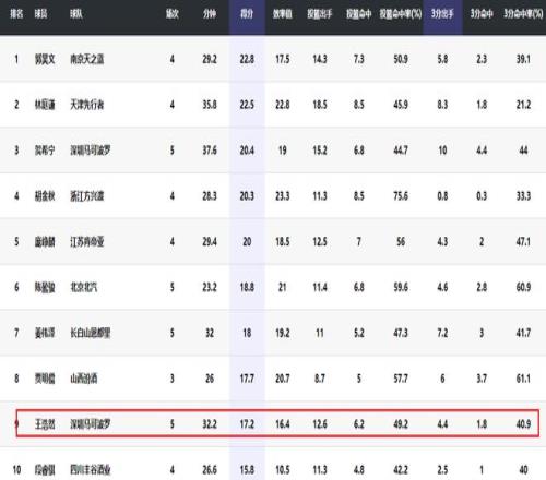 本賽季王浩然場均得到17.2分6.4籃板2.2助攻,投籃命中率49.2%,三分命中率40.9%,罰球命中率71.4%。王浩然迎來了大蛻變,他是進(jìn)步最快球員的有力競爭者。