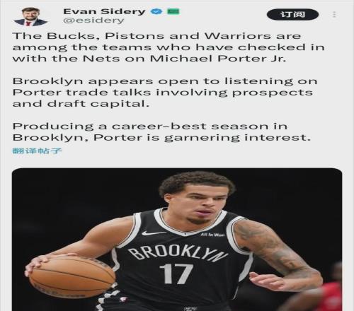 名記Sidery:勇士、雄鹿和活塞等隊(duì),已和籃網(wǎng)溝通過小波特的潛在交易......