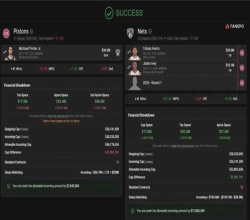 美媒建議活塞可以就小波特,向籃網(wǎng)報價哈里斯(2663萬美元,合同年)+艾維(1011萬美元,合同年)+一個選秀權(quán),也許便能大功告成。