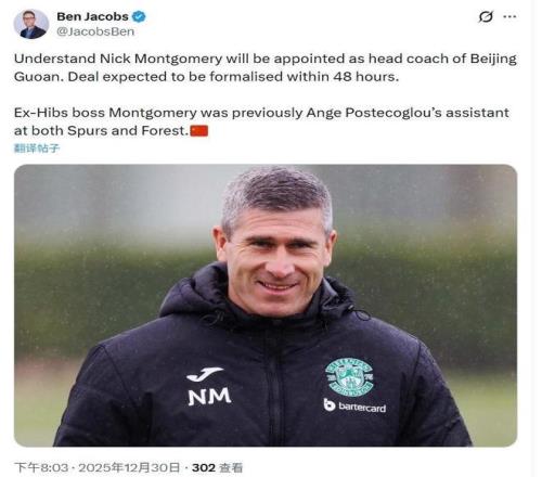 在此之前,記者雅各布斯也在社交媒體發(fā)文稱,尼克-蒙哥馬利將出任北京國安主帥,雙方預(yù)計將在48小時內(nèi)簽署正式協(xié)議。