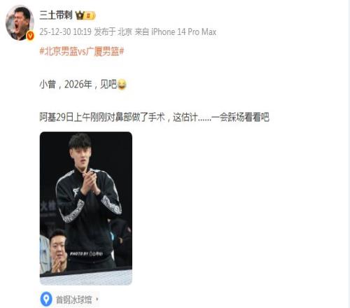 北京時(shí)間12月30日,北京將坐鎮(zhèn)主場(chǎng)迎戰(zhàn)衛(wèi)冕冠軍廣廈,北京主帥許利民透露曾凡博無緣登場(chǎng),他的回歸首秀將是2026年1月1日主場(chǎng)對(duì)陣廣東的焦點(diǎn)京粵大戰(zhàn)。至于陳盈駿已經(jīng)接受鼻骨骨折手術(shù),但不會(huì)缺席太久比賽。